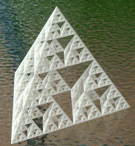 ● 這是一個廣為流傳的分形,是由二維的Sierpinski三角形泛化成的三維物體,通常被叫做Sierpinski 四面體。